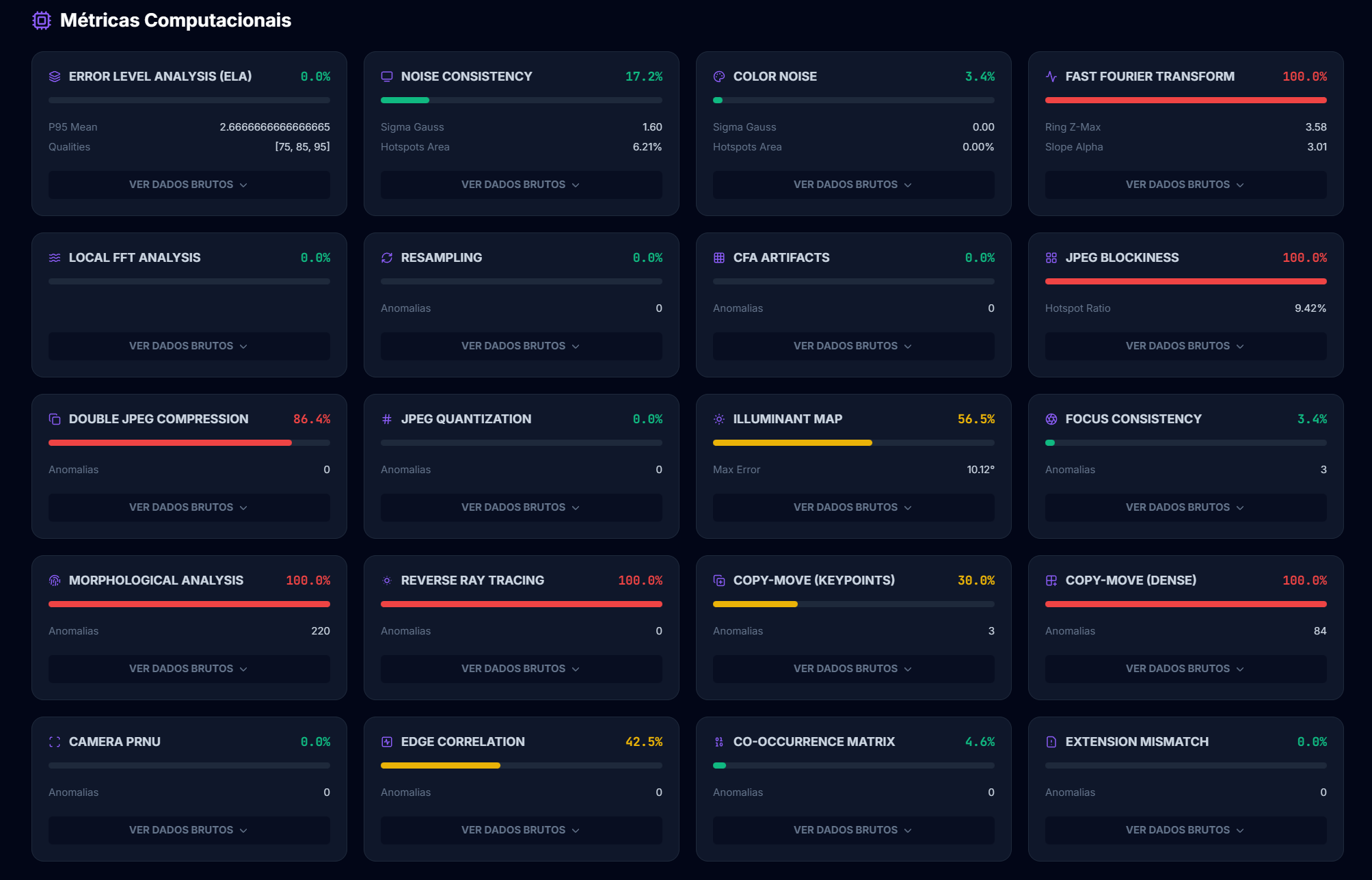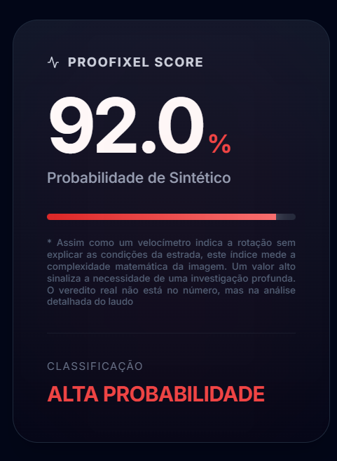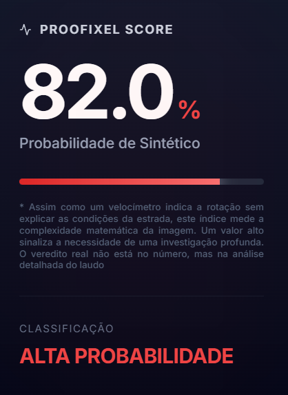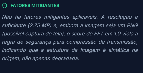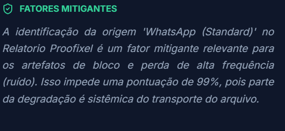 O modelo Trinity da Proofixel é treinado para ignorar compressões, mas reprocessamentos pesados inserem "Blocos JPEG" e "Ruído de Quantização". Isso age como uma neblina, dificultando a detecção da assinatura original da IA geradora.